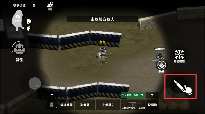 3、点击右侧的武器图标,瞄准并精准射击敌人,注意借助周围的掩体来减少自身所受伤害。