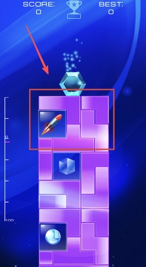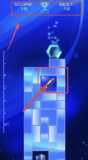 3、留意上方SCORE和BEST数值的变动情况,在合适的时机运用火箭道具来助力,争取打破自己的最高分记录。