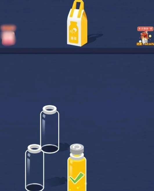 比如第一关,先点那个有三层水、最上面是黄色的瓶子