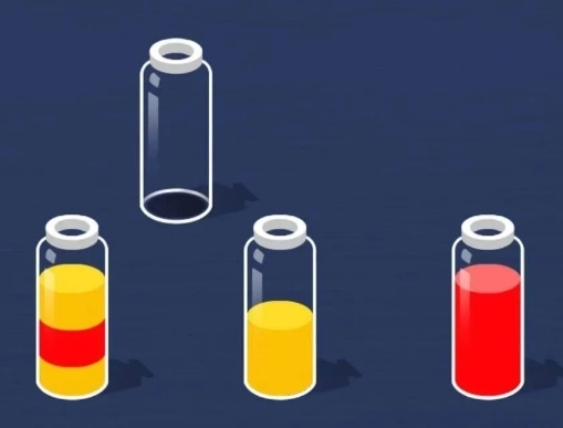 1、我们能看到许多装有不同颜色液体的瓶子,需要把相同颜色的瓶子归到一起。