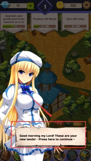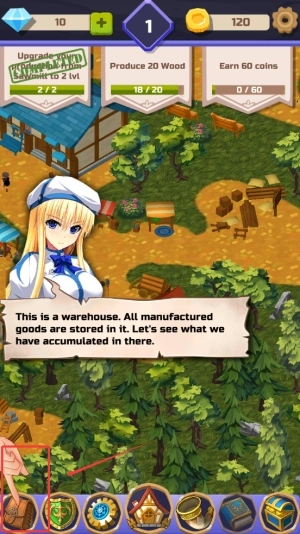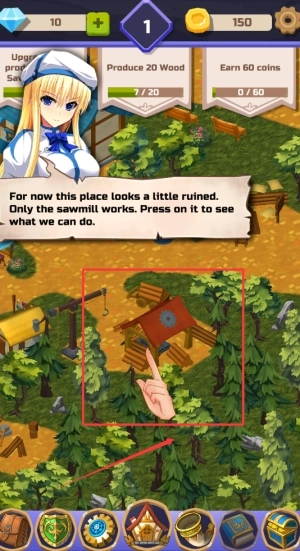 1、进入游戏后,首先要做的就是跟着剧情提示修复小镇的基础建筑,慢慢解锁更多功能区域,同时在这个过程里认识拥有不同能力的萌娘角色。
