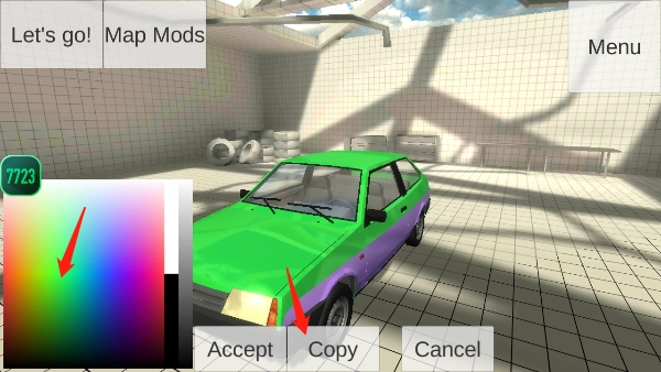 2、挑选心仪的颜色后点击Accept确认,就能完成车辆外观的喷涂操作。