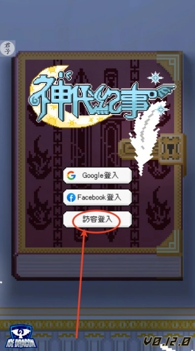 1、打开并进入神代纪事,我们可以选择游客登录,当然要是你有谷歌账号,也能选择登录;
