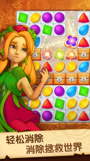 2、踏入魔法大陆的奇幻天地,精致绚丽的宝石元素与华丽夺目的消除特效交织呈现。
