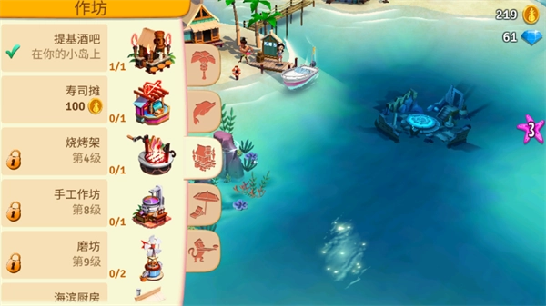 玩家建造新的海边酒吧,打造全新的酒吧环境。