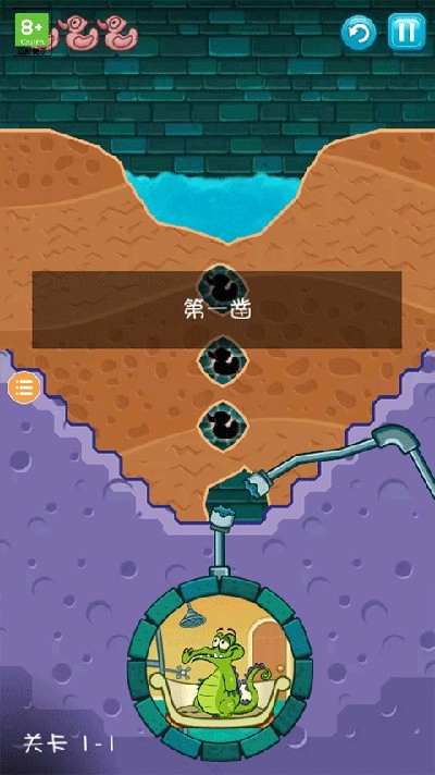 3、游戏的玩法简单直观,玩家的目标是把水流引导到小鳄鱼所在的地方。