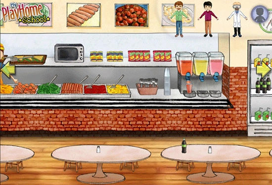 5、进入厨房区域,你可以自行取餐、倒果汁等,总之这里的大部分物品都能移动和操控,带来如同在食堂沉浸式用餐的体验。