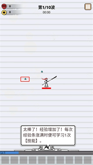4、在游戏过程中,地图上会出现经验掉落,玩家能够收集这些经验,而升级后则可以获取技能。