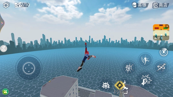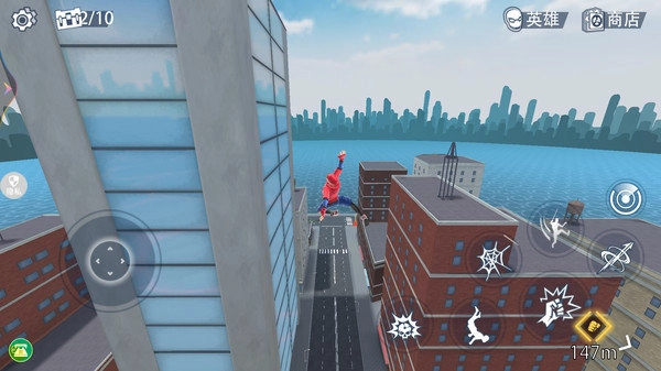 1、通过蛛丝不断的攀爬跳跃,穿梭在城市之中。