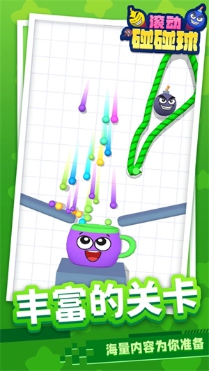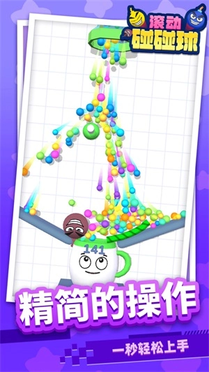 滚动碰碰球是一款休闲益智游戏。在游戏里,玩家得通过连接绳子来防止小球掉落,让它们能顺利滚进容器。操作虽然简单,但需要更强的逻辑思维能力。成功落入容器的球越多,得分就越高,玩起来十分有趣。